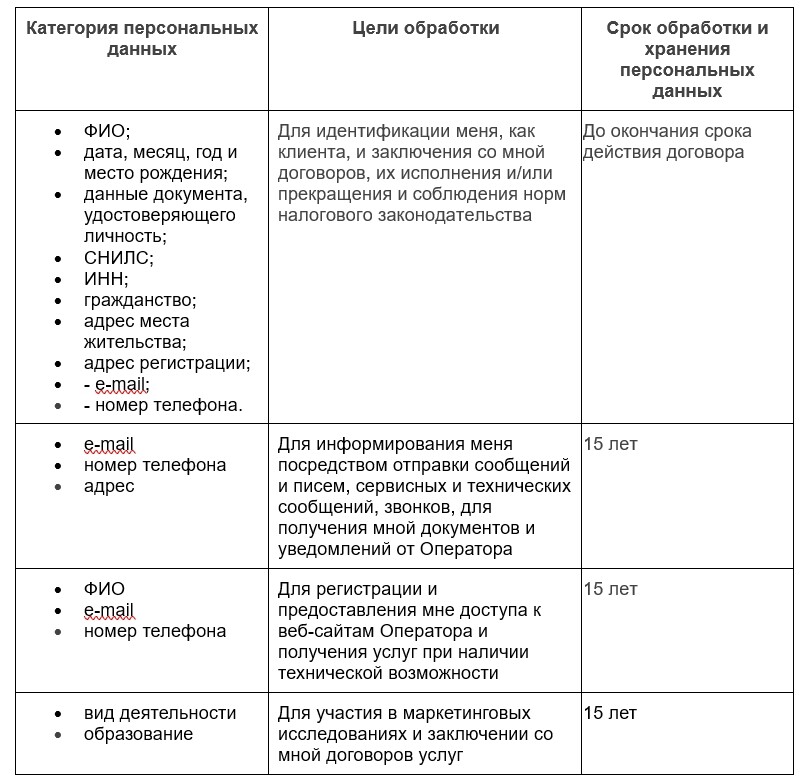 обработку моих персональных данных путем сбора, систематизации, накопления, хранения, уточнения и удаления, а также путем передачи (предоставления) третьим лицам, привлеченным Оператором, следующими способами: